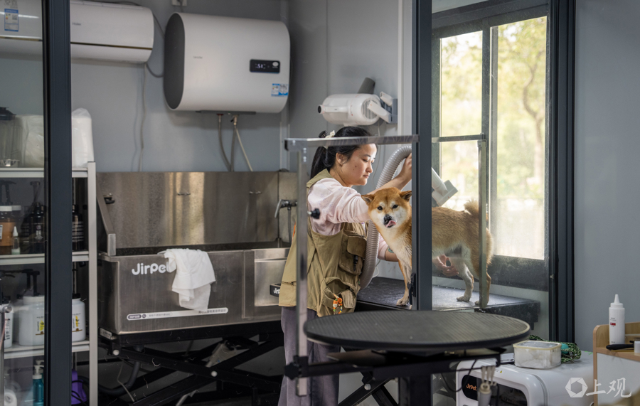 “早上说去公园玩,毛孩子激动了一路。”养狗十多年的金女士表示,住在世纪公园附近,以前遛狗不能进公园,加上体型大,时常要避开人流沿着马路边的墙角遛狗,难免觉得憋屈,现在有这么好的宠物公园很难得。